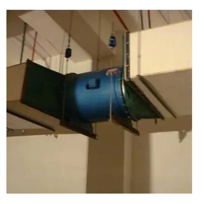 ·& nbsp; ; ; ; ; ; ; ;三是軸流風機懸掛安裝方法:具體方法是先用螺栓將減振器與風機連接,在風機重心兩側對稱安裝減振器,直接吊起風機,插入懸掛支架。懸掛支架的高度由用戶根據實際空間距離確定。這種安裝類型通常不用于16英寸以上的風扇。