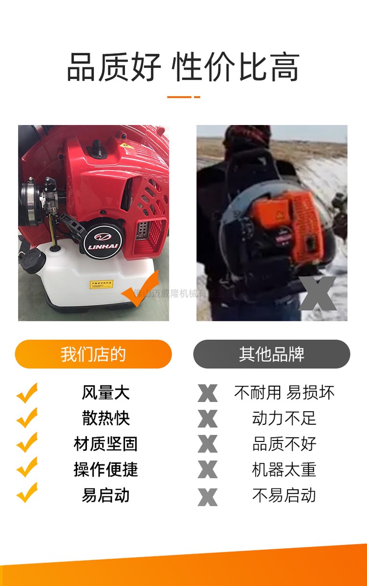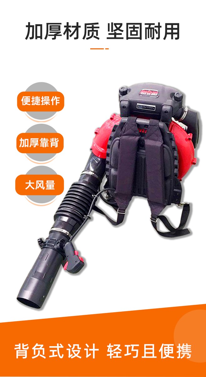 產品特點:二沖程發動機、背負式風力滅火器、掃葉、森林滅火、現場排渣、溫室吹雪、風力滅火、道路清潔、環衛清潔。免費發票,一年保修,廣泛適用,包括清掃落葉、沙子和礫石、溫室吹雪、森林消防、建筑工地除塵和排渣。有效滅火距離可達1.97M。坐墊加厚,加寬加厚,舒適舒適。散熱和通風可防止油溫過高。多個散熱孔使散熱迅速。可拆卸風管吹管,性能穩定,適用性強,啟動方便,風量大,風速高,質量可靠,油耗低,簡單方便。